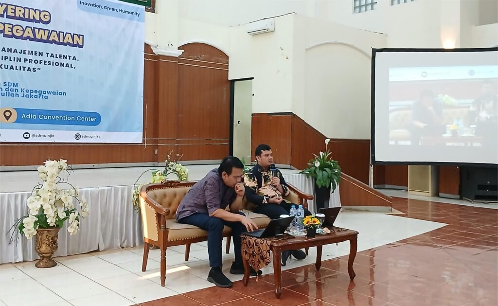 Kedua narasumber tersebut memaparkan materi mengenai ruang lingkup disiplin ASN dan kepangkatan, termasuk berbagai ketentuan, prosedur, serta prinsip penegakan aturan yang harus dipahami oleh setiap aparatur sipil negara. Materi ini diharapkan dapat meningkatkan pemahaman dan kepatuhan ASN terhadap regulasi kepegawaian serta mendorong terbentuknya budaya kerja yang berintegritas dan profesional di lingkungan UIN Syarif Hidayatullah Jakarta.