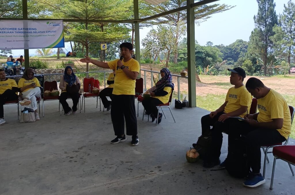Rangkaian kegiatan diawali dengan tracking menuju Curug Leuwi Hejo, dilanjutkan dengan sosialisasi program-program unggulan BPJS Ketenagakerjaan, antara lain aplikasi JMO, Manfaat Layanan Tambahan (MLT), serta Program Jasa Konstruksi (Jakon).
